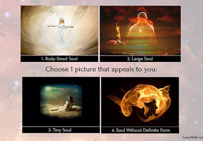 Zamislite da ste umrli, ali vaša duša preživljava. Koji oblik će tvoja duša preuzeti nakon smrti svog tijela? Izaberite jednu sliku i takođe obratite pažnju na tekst ispod. Odmah se odlučite, nemojte puno razmišljati!