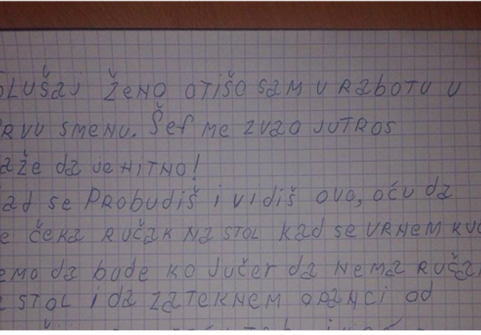 Na društvenim mrežama pojavila se poruka koju je suprug ostavio ženi, nakon što je hitno morao na posao.