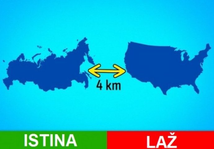 Istina: Granica između ovih zemalja nalazi se u moru. Međutim, u središtu Beringovog moreuza nalaze se 2 mala ostrva. Jedno od njih pripada Rusiji, a drugo je teritorija Amerike. Ona su udaljena jedna od drugog samo 4 kilometra.