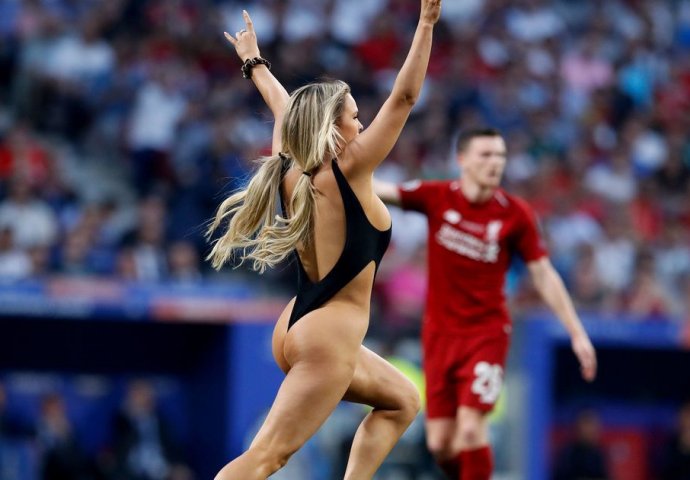 Na nogometni teren za vrijeme finalne utakmice Lige prvaka između Liverpoola i Tottenhama u Mardidu upala je žena odjevena u oskudni kupaći kostim na kojem je bila reklama za rusku po.rnografsku web stranicu.