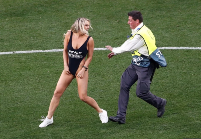 Sportska javnost od subote ne prestaje pisati o plavuši koja je prekinula finale Lige prvaka.