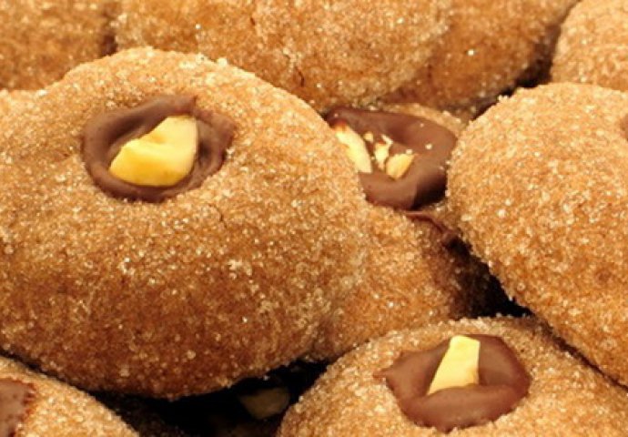 Umutiti 135 g kristal šećera, puter, žumance, mlijeko i ekstrakt vanile u velikoj posudi za miješanje. Miješati dok se ne stvori kremasta masa. Postepeno dodavati brašno, kakao i so. Pokriti, staviti u frižider i hladiti sat vremena. Zagrijati rernu na 175°C (zagrijati na najjače pa smanjiti na tu temperaturu). Praviti kuglice prečnika oko 2, 5 cm, i uvaljati u (100g) kristal šećera. Redati kuglice na rastojanju od 5 cm na papiru za pečenje. Zadnjim dijelom varjače praviti rupice na sredini svake kuglice, dubine 1, 5 cm. Peći od 10-12 minuta ili dok ivice ne postanu tvrde dok je sredina još mekana. Hladiti keksiće 2 minuta na plehu a onda izvaditi na rešetku i ohladiti do kraja. U svaku rupicu usuti topljenu čokoladu i ubaciti i po djelić lješnika.