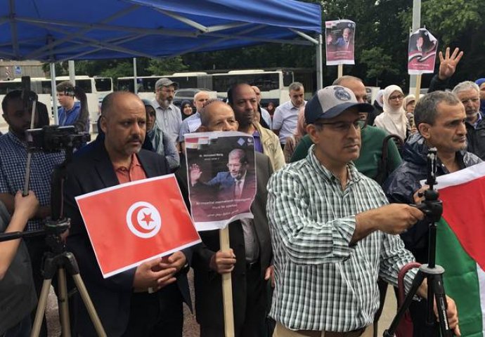 Okupljeni građani su nosili fotografije Mursija i transparente na kojima je pisalo „Abdel Fattah el-Sisi je ubica“ i „Ne vojnom udaru u Egiptu“.