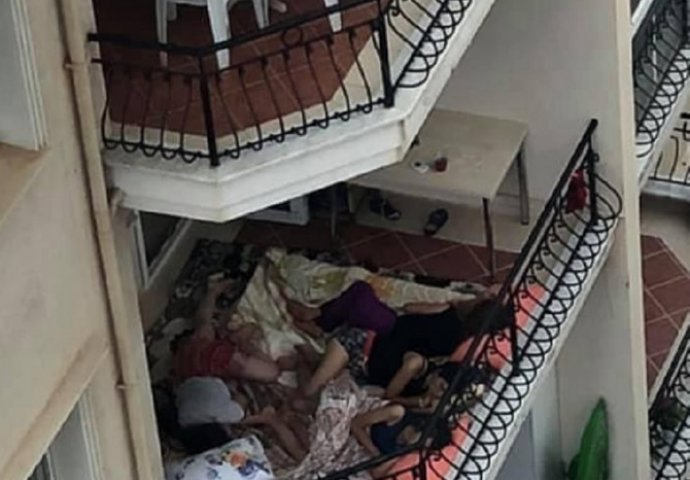 Kako se na slici može vidjeti, grupa ljudi spavaju na terasi, pa su se mnogi zapitali šta se ovdje tačno desilo.