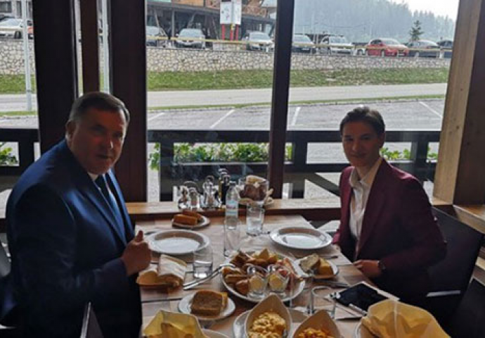 Predsjedavajući Predsjedništva BiH Milorad Dodik upriličio je jutros na Јahorini radni doručak sa predsjednicom Vlade Srbije Anom Brnabić.