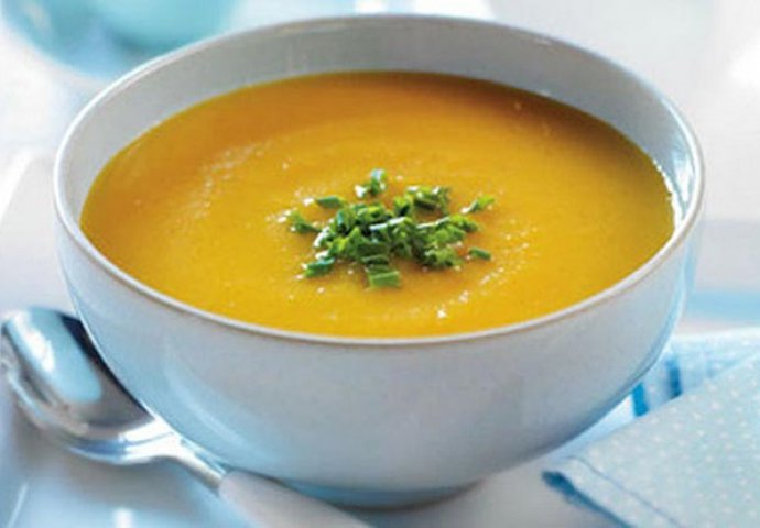Na puteru popržite sitno sjeckani luk i bijeli luk. Dinstajte dok ne omekša pa dodajte rendanu mrkvu i đumbir. Prelijte vodom i kuhajte dok povrće ne omekša. Sameljite štapnim mikserom pa dodajte vrhnje za kuhanje i pustite da proključa. Sklonite s vatre i poslužite.