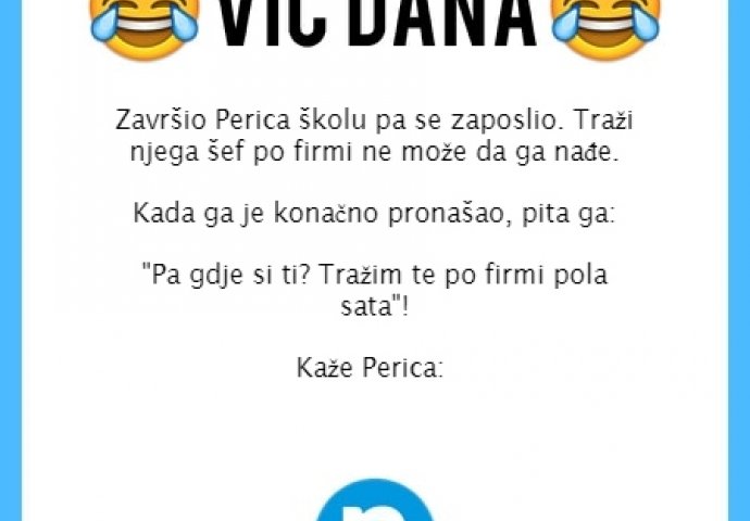 Završio Perica školu pa se zaposlio. Traži njega šef po firmi ne može da ga nađe.