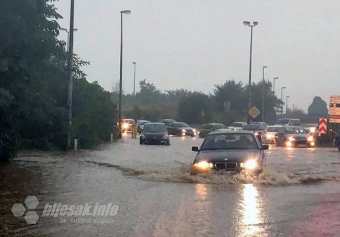 Ulice Mostara su poplavljene, kao i magistralna cesta M-17 na kojoj su se stvorile kilometarske kolone.