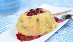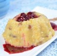 Pažljivo prebacite puding iz rerne, uklonite foliju i papir za pečenje i velikom kašikom izvadite željenu količinu pudinga na pripremljene tanjire. Prelijte sosom i servirajte sa malo slatke pavlake, sladoledom ili nekim drugim dodatkom po želji.