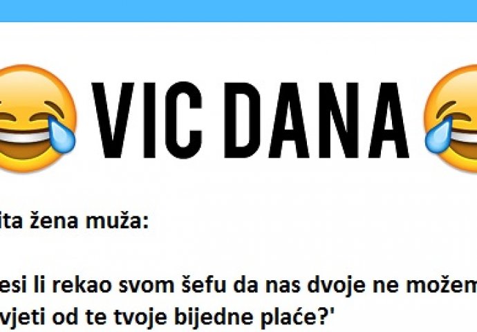 Pita žena muža: 'Jesi li rekao svom šefu da nas dvoje ne možemo živjeti od te tvoje bijedne plaće?' Muž odgovara: 'Jesam.' Žena: 'I, što ti je rekao?' Muž: 'Da se razvedem…'