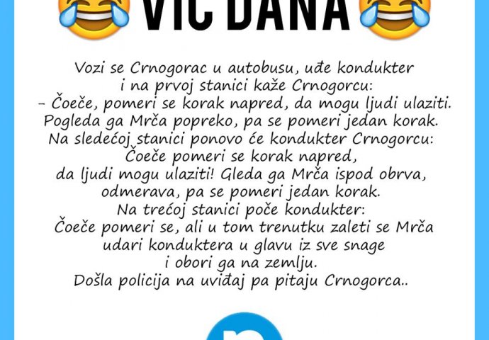 Vozi se Crnogorac u autobusu, uđe kondukter i na prvoj stanici kaže Crnogorcu: