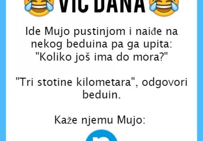 Ide Mujo pustinjom i naiđe na nekog beduina pa ga upita: "Koliko još ima do mora?"