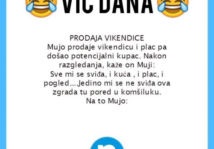 Mujo prodaje vikendicu i plac pa došao potencijalni kupac. Nakon razgledanja, kaže on Muji: