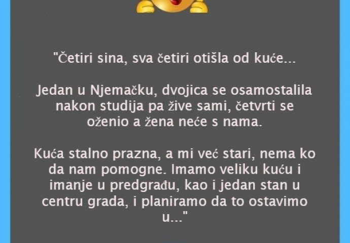 POUČNA PRIČA: "Četiri sina, sva četiri otišla od kuće... "