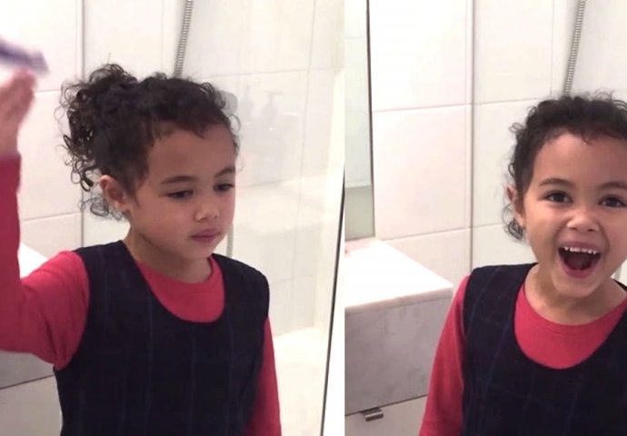 Ova šestogodišnjakinja ubacuje tetrapak preko ramena u frižider, isto tako četkicu za zube ubacuje u čašu, kao i DVD u plejer i parče tosta u toster. A na snimcima djeluje kao da joj to ide kao od šale.