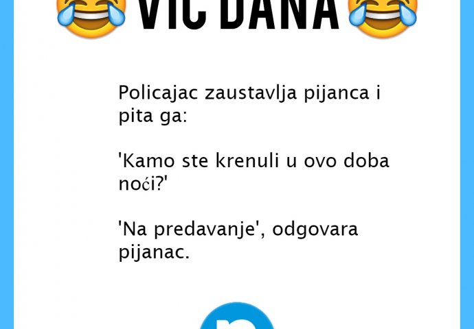 Policajac zaustavlja pijanca i pita ga: 'Kamo ste krenuli u ovo doba noći?'