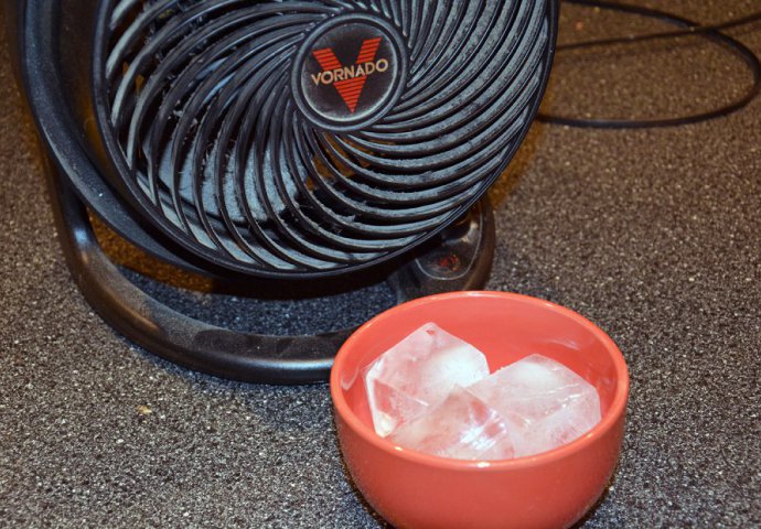 Svake večeri, on stavlja vlažan peškir na prozor. Od danas, i vi ćete raditi isto! Zanimljivosti 18.07.15. 12:56 Rješenja za vrele ljetnje dane. 2. Kockice leda ispred ventilatora Da biste ohladili sobu pred spavanje, samo stavite činiju leda ispred ventilatora