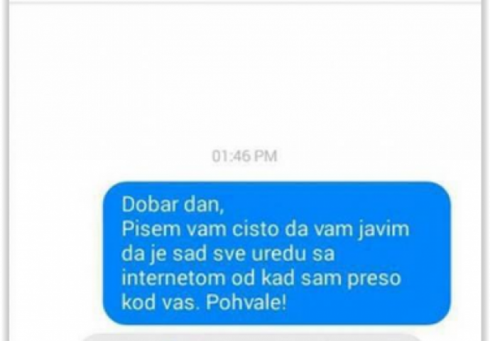 Korisnica je poslala poruku u kojoj je nahvalila mrežnog operatera a oni su oduševljeni uputili joj zahvalnost , a onda je uslijedio urnebesan odgovor koji je nasimijao region: