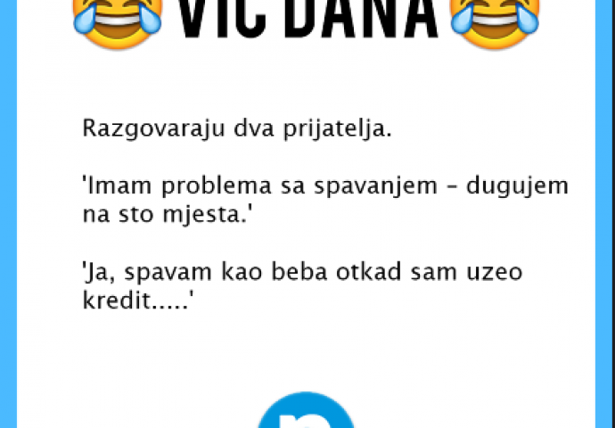VIC DANA: Kako spavate vi koji ste uzeli kredit?! Kiosk 05.10.19. 10:19 . Razgovaraju dva prijatelja o tome kako spavaju otkada su uzeli kredit... A evo i zašto spava kao beba! Novi.ba/Vicdana
