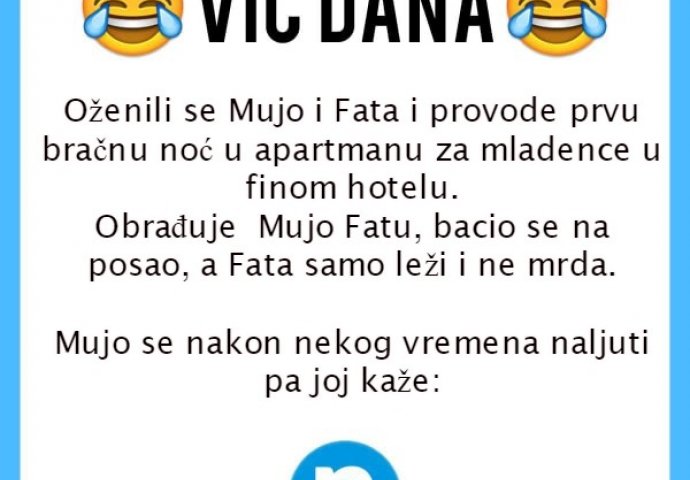 Oženili se Mujo i Fata i provode prvu bračnu noć u apartmanu za mladence u finom hotelu.