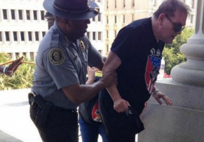 Okupljanje Ku Klux Klana u Južnoj Karolini ovaj put ostat će zapamćeno po nečemu što nema veze s mržnjom, upravo suprotno. Rob Godfrey zabilježio je fantastičnu fotografiju i objavio je na Twitteru, koja vjerovatno na najbolji način oslikava pobjedu humanosti nad apsurdom.