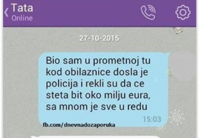 CHATA DANA: Kad javiš ocu da si slupao auto, a onda ti on pošalje ovakvu poruku