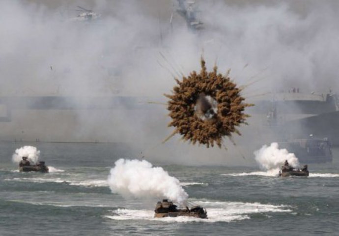 Vojne vježbe u Južnoj Koreji zvuče zloslutno u vrijeme kada cio svijet bruji o mogućem ratu između Sjevera i Juga, ali ova fotografija eksplozije granate na vježbama u Seulu oduzima dah.