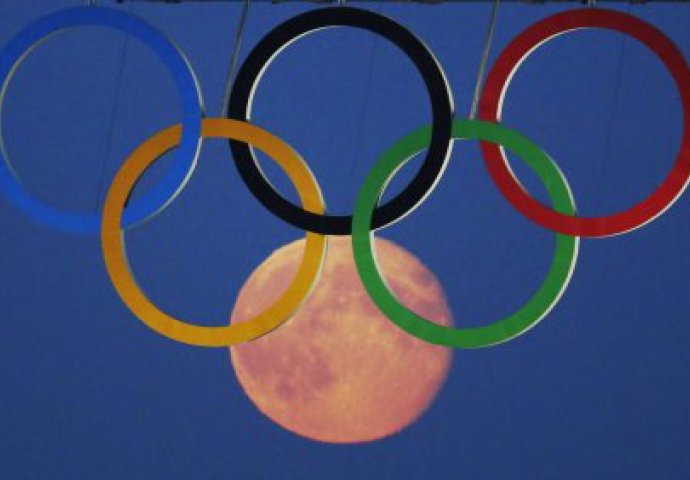 Mjesec se diže iznad Olimpijskih igara u Londonu tačno tako da se uklopi u prepoznatljive olimpijske krugove, praveći trougao nalik kuglama sladoleda.