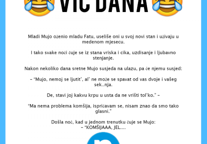 – “Mujo, vadi joj tu krpu iz usta, cijela zgrada misli da mene je*eš..