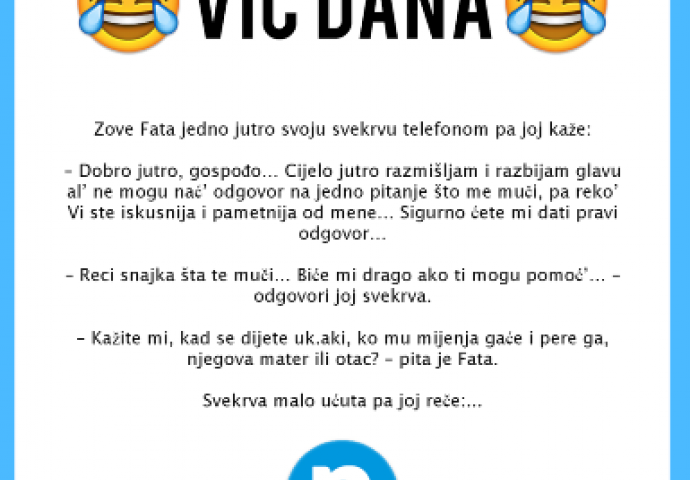 Zove Fata jedno jutro svoju svekrvu telefonom pa joj kaže: