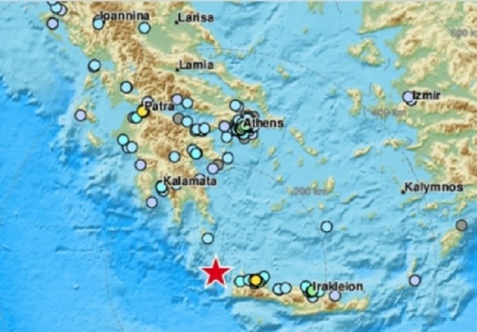 Za sada nema informacija o šteti, ali vatrogasna služba na Kritu je u pripravnosti, prenosi Katimerini.