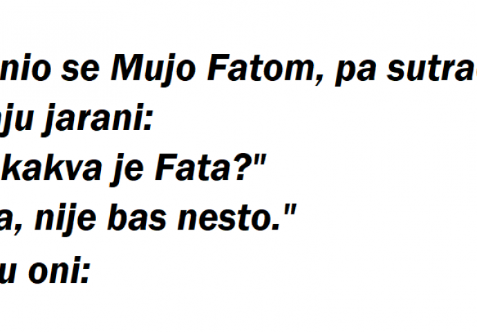 Ozenio se Mujo Fatom, pa sutradan pitaju jarani: