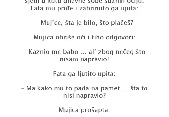 – Kaznio me babo … al’ zbog nečeg što nisam napravio!
