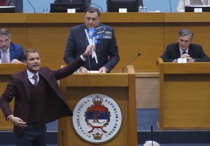 DRAŠKO STANIVUKOVIĆ SA NATO ZASTAVICAMA STAO ISPRED DODIKA U SKUPŠTINI: Svi pričaju o reakciji DODIKA (VIDEO)