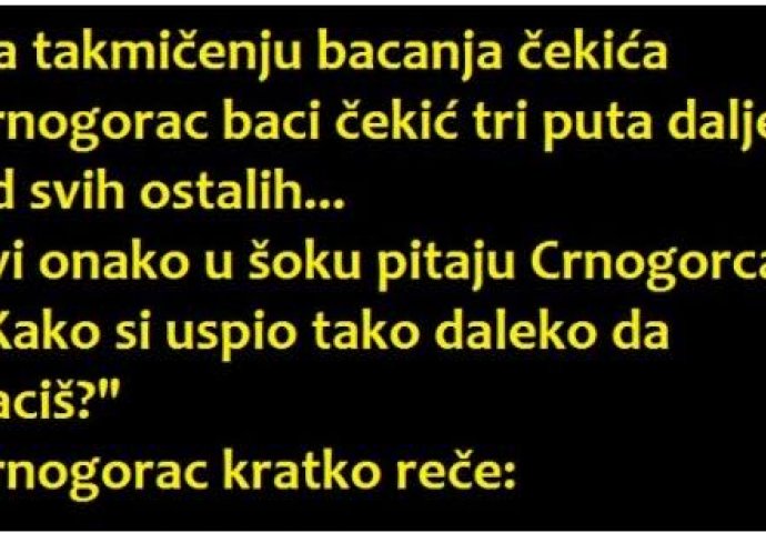 Na takmičenju bacanja čekića Crnogorac baci čekić tri puta dalje od svih ostalih…