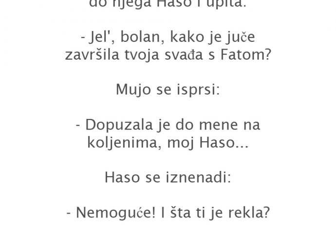 Mujo zasjeo u kafanu, pa dođe do njega Haso i upita: