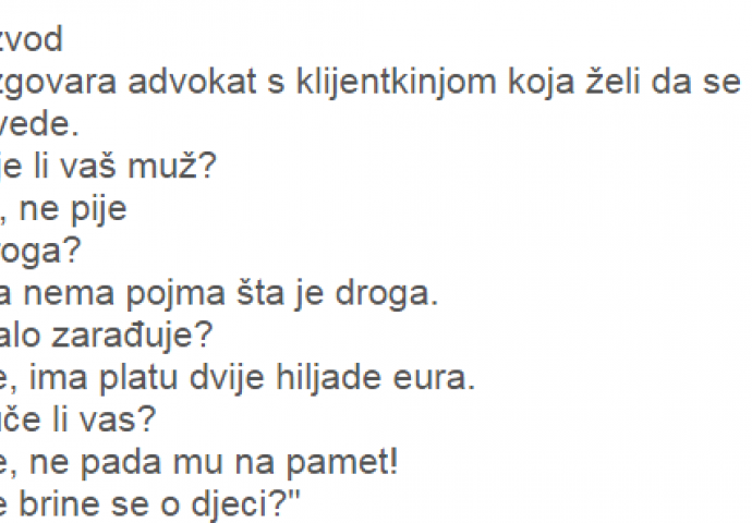 – Pa koji je onda razlog za rastavu draga gospođo?