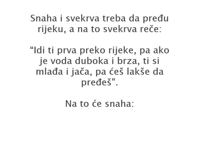 Snaha i sverkva treba da pređu rijeku, a na to svekrva reče: