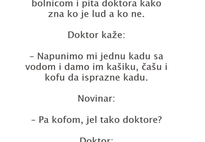 Ide novinar psihijatrijskom bolnicom i pita doktora kako zna ko je lud a ko ne.