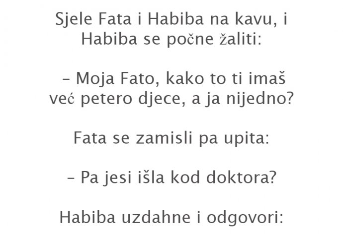 – Moja Fato, kako to ti imaš već petero djece, a ja nijedno?