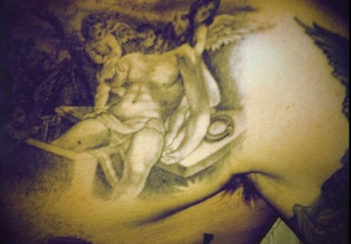 Na prsima je dao iscrtati Isusovo tijelo koje pridržavaju tri anđela. Posvetio ih je sinovima - Brooklynu, Romeu i Cruzu.