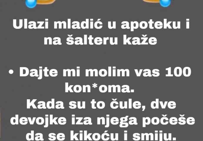 Mladić se okrene, pogleda ih i kaže apotekarki