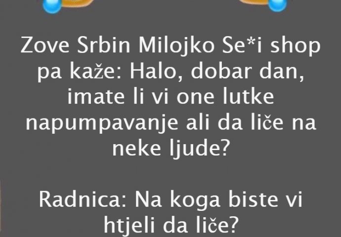 Zove Srbin Milojko Se*i shop pa kaže: Halo, dobar dan, imate li vi one lutke nanapumpavanje ali da liče na neke ljude?