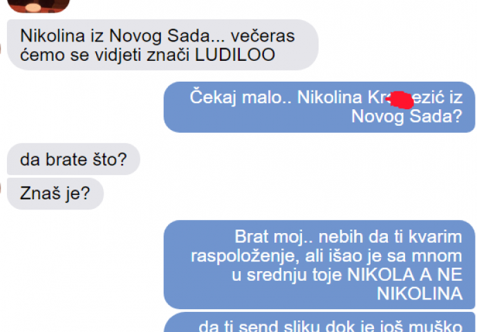 POHVALIO SAM SE DRUGU DA ĆU VEČERAS IZAĆI SA PREZGODNOM NIKOLINOM, a onda mi je on poslao njenu sliku bez majice: OVO NIJE MOGUĆE, DA OVAKO BUDEM PREVAREN?