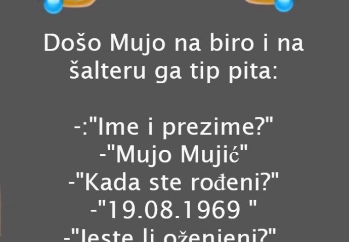 Došo Mujo u zavod za zapošljavanje i na šalteru ga tip pita: