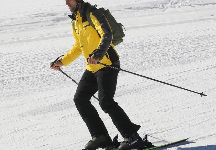 Tako smo mogli da vidimo kako podučava svog sina Stefana da skija i kako je brižljiv otac, pa pazi na sve i da njegov nasljednik ne nazebe.