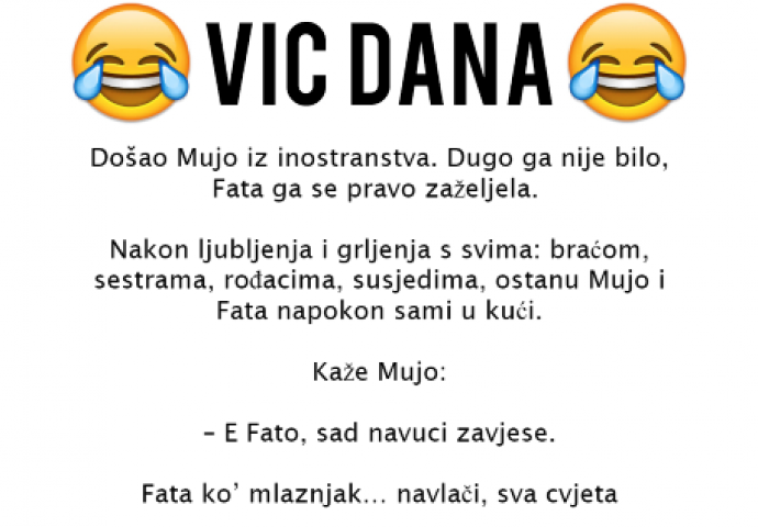 Došao Mujo iz inostranstva. Dugo ga nije bilo, Fata ga se pravo zaželjela.