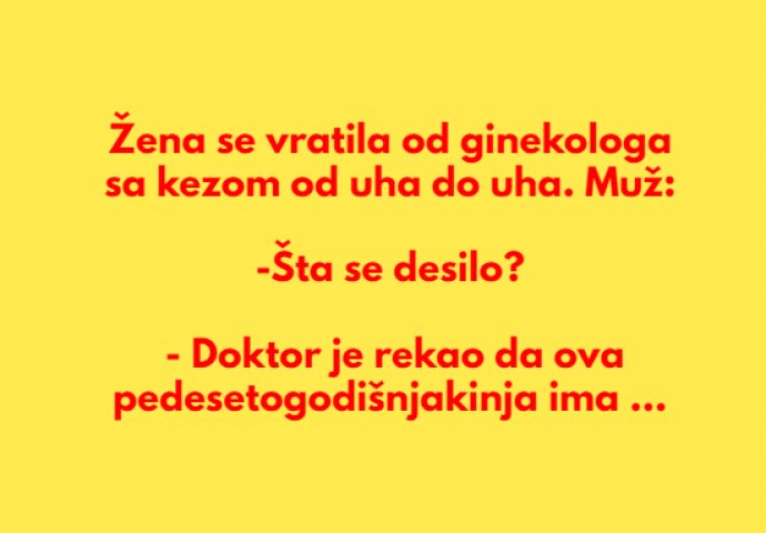 Žena se vratila od ginekologa sa kezom od uha do uha. Muž: