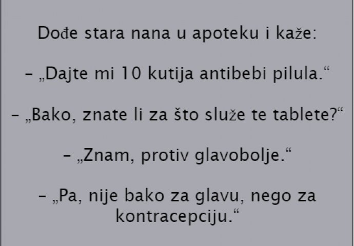 – „Pa, nije bako za glavu, nego za kontracepciju.“