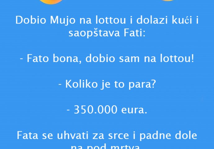 Dobio Mujo na lottou i dolazi kući i saopštava Fati: